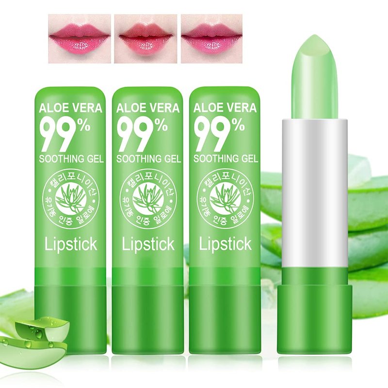 3 Pack Aloe Vera Lipstick,Long Lasting Nutritious Tinted Lip Balm Natural Moisturizer Magic Temperature Color Change Lip Gloss