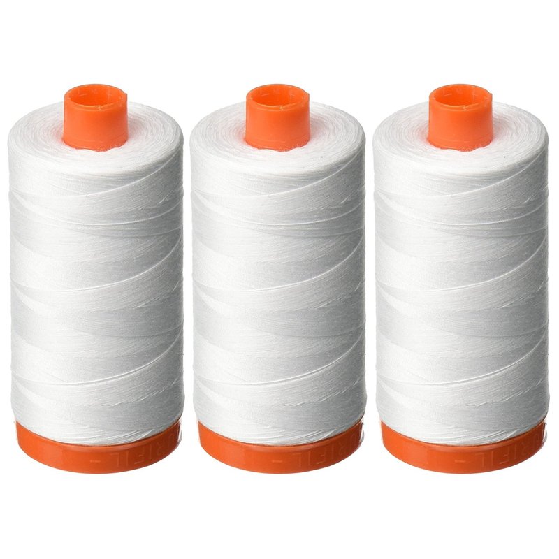3-PACK - Aurifil 50WT - White, Solid - Mako Cotton Thread - 1422Yds EACH
