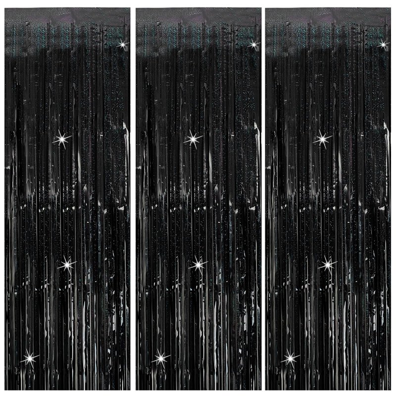 3 Pack Black Party Streamers Backdrop Tinsel Foil Fringe Curtains Halloween Party Decorations Birthday Wednesday Party Decorations Graduation Halloween Decor Party Supplies