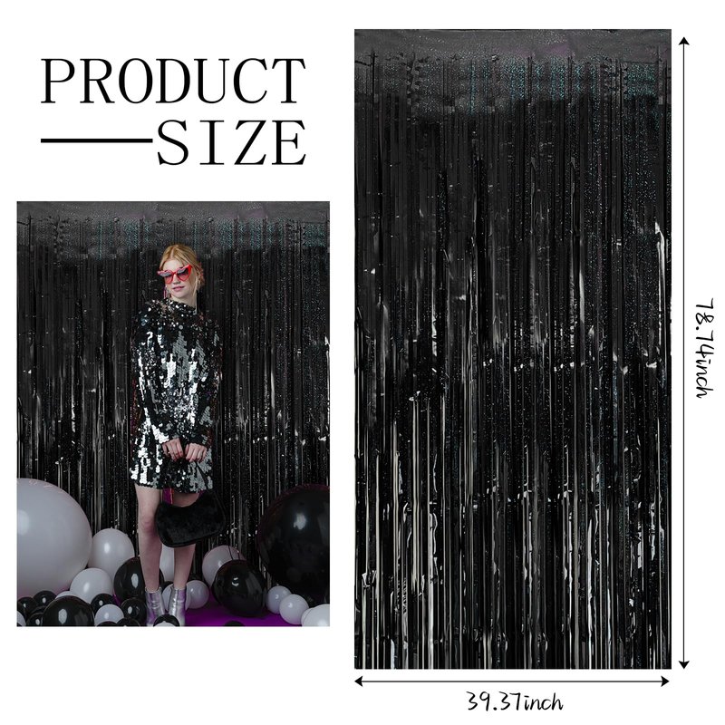- Black Birthday Decorations:The back of fringe curtain has double-sided tape, which can be stuck very firmly to any place you want such as walls, tables, door frames. You can use scissors to cut the length you want, and you can use two or more pieces of the curtain to splice and overlap.