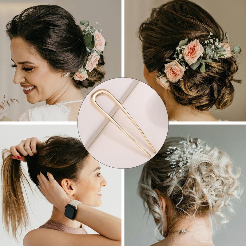 - PACKAGE INCLUDE: You wil receive 3 pcs U-shaped hair pins in 3 colors (gold,silver,black), 4.3 inch long, 1.2 inch width