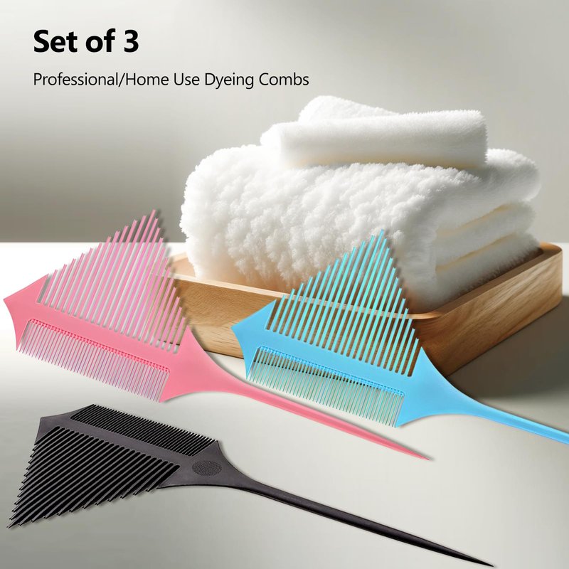Our 3pcs Hair Styling Comb set is a professional solution for your hairdressing needs. Each comb in this set features a non-slip design with a matte handle and double-sided concave-convex anti-slip particles, ensuring a firm grip and comfortable handling. Crafted to meet the highest standards of precision and quality, these combs are exceptionally sturdy and durable. The fine tooth end of the comb is perfect for smoothly combing hair, while the other end assists in sectioning hair and preventing static electricity. This versatility makes them suitable for various hair types, including straight, curly, short, wet, and thick hair. The anti-static function of the comb guarantees a smooth, static-free combing experience. The bifurcated ruler design further enhances the functionality, allowing you to use the fine teeth for smoothing hair and the other side for selecting strands for dyeing, creating fashionable highlights with ease.