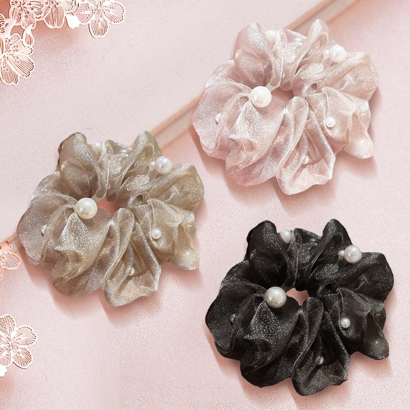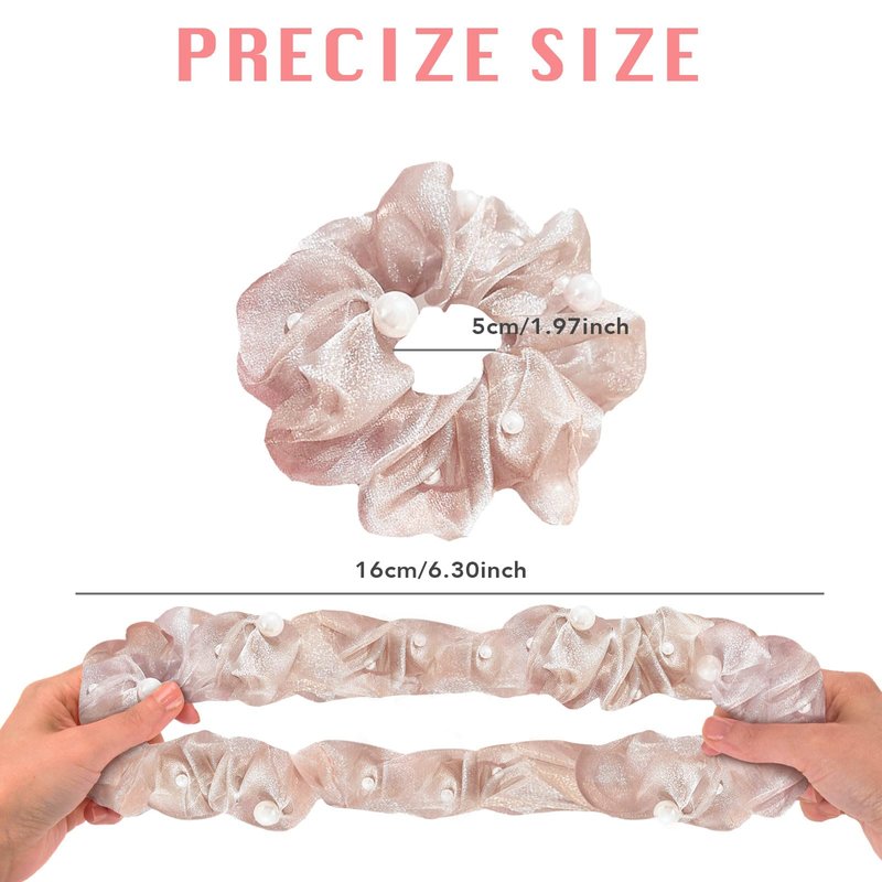 -Material: This decorative scrunchies for women are made of high-quality organza and pearls, and the elastics rubber band inside is very stretchy, easy to wear, will not hurt the hair.