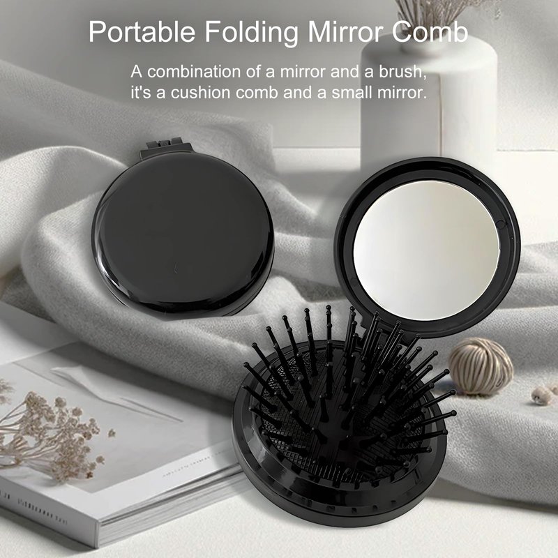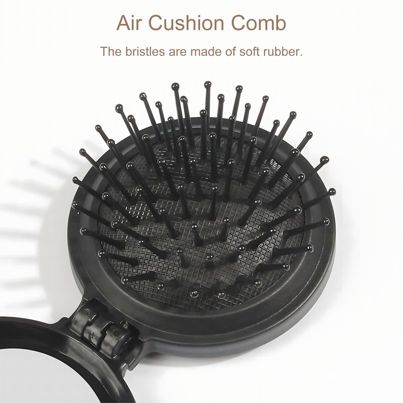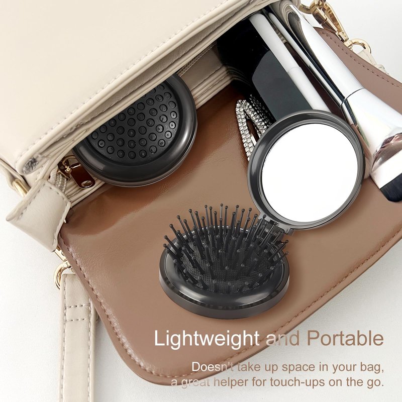 - Each package contains three mini travel hair brushes, complete with built-in mirrors, combining convenience with functionality. The compact design makes these brushes perfect for storing in a pocket, purse, or handbag.