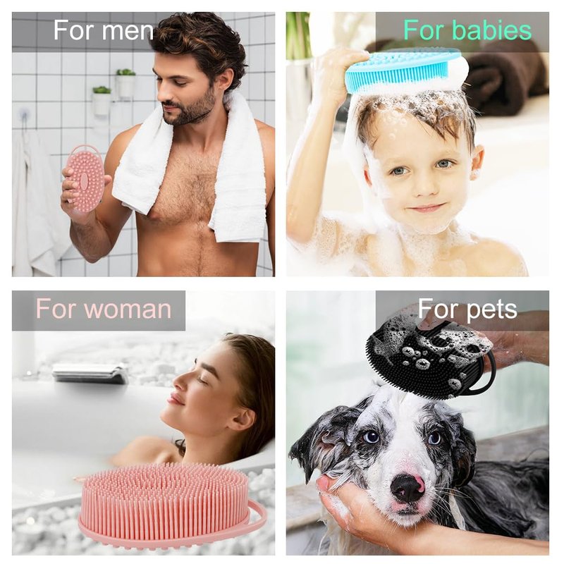 - Functional: The bristles of our body scrubber are soft and tough to clean your sensitive and all kinds of skin. It can be as a shower scrubber, facial brush, massage brush. It also can be as a dish brush in your kitchen if you need. These silicone body brush for showering are great gift for family and friends. Suitable for men, women and all. Set of 3 combinations of different colors