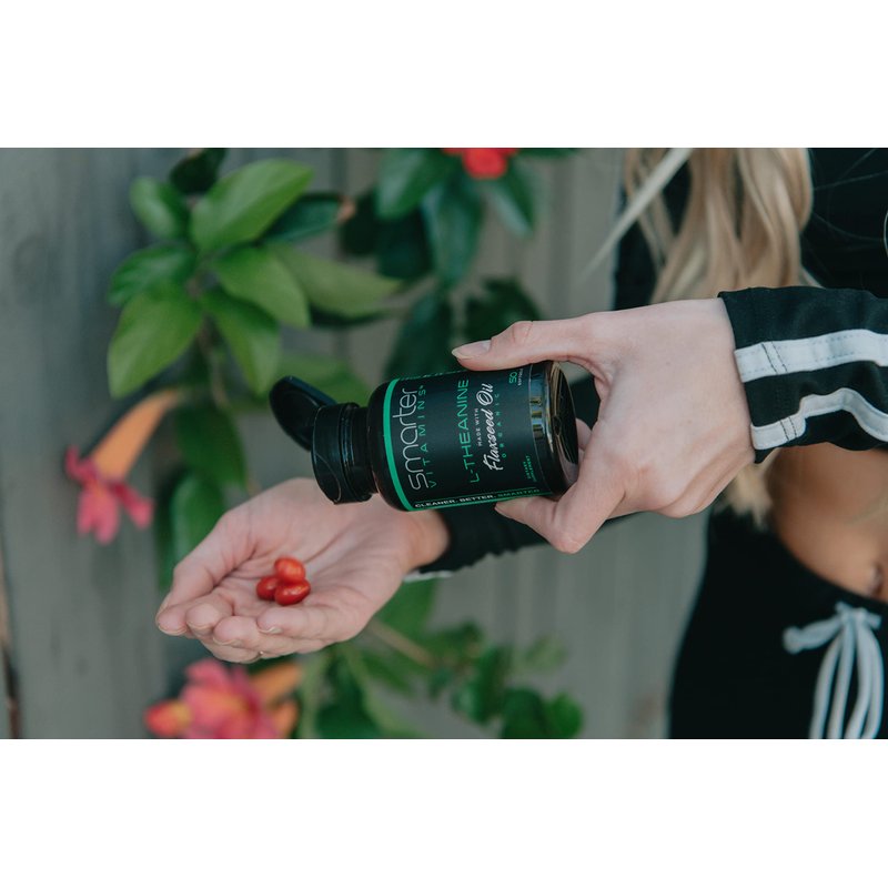 SmarterVitamins 250mg L-Theanine is an Amino Acid derived from Green Tea that Promotes an Alert State of Relaxation without Drowsiness, Enhances Mental Clarity & Focus, & Helps to Prevent Jitters Caused from Too Much Caffeine Consumption. Added Flaxseed Oil Provides ALA Omega-3 Essential Fatty Acid for an Extra Source of Energy & Brain Support.