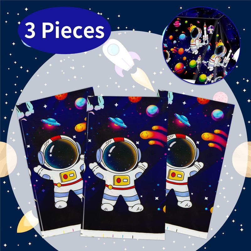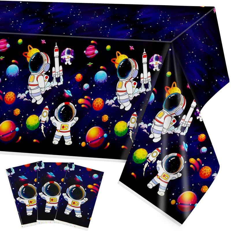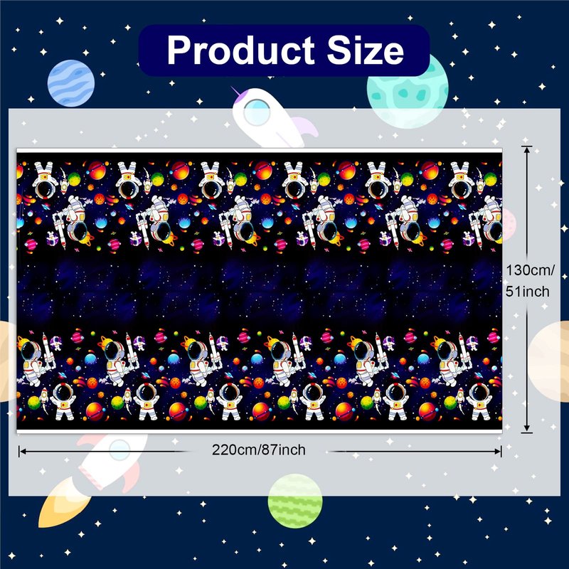 - WHAT YOU WILL GET: You will receive 3 pack outer space tablecloths with novel design solar system elements. The size is 51" x 87" (130 x 220 cm), which fits most rectangular tables. The space tablecloth will work perfect for your table setting, help you to make your party more interesting and attractive. Our galaxy plastic table cover designs are brightly colored, cute and childlike, children will love it.