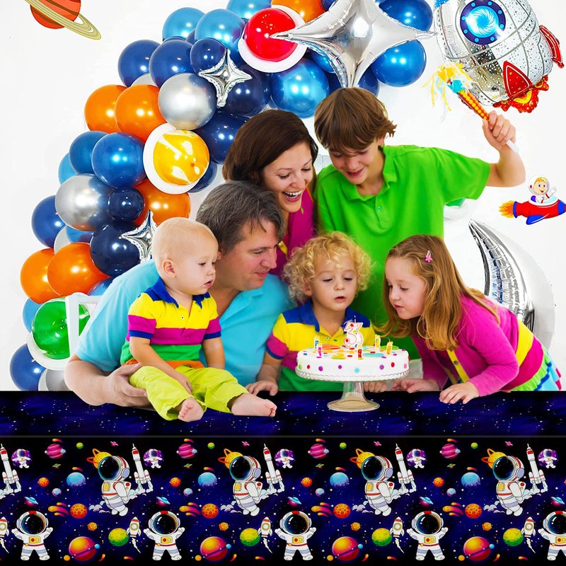 - GREAT QUALITY AND GOOD MATERIAL: The space party supplies plastic table covers are made of great quality PE material, which is soft, easy to fold and use. The outer space planet astronaut tablecloth will protect your table well, they are waterproof, stain resistant and not easy to break. The printing color of the space party tablecloth is brilliant and not easy to fade.