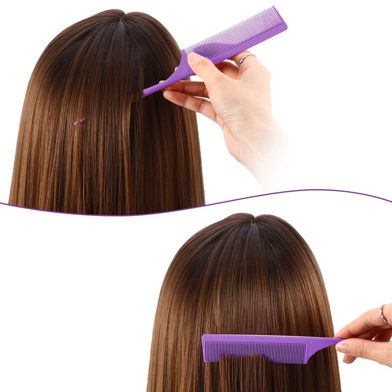 3 Pack Tail Comb Carbon Fiber Rat Tail Styling Comb Heat Resistant Anti Static Teasing Comb for Back Combing Root Teasing Adding Volume Evening Styling (Purple)