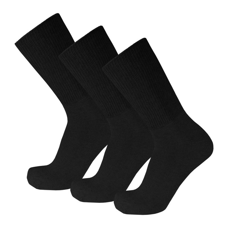 3 Pairs of Premium Cotton Loose Top Diabetic Neuropathy Crew Socks (10-13, Black)