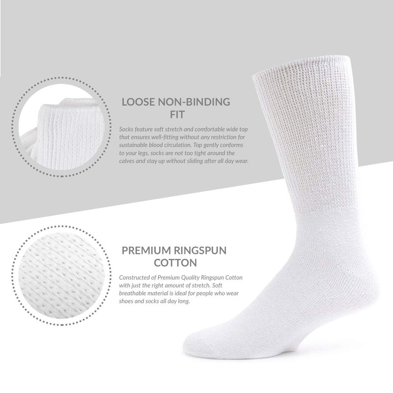 - GREAT SOLUTION: These crew and ankle length socks are great solution to people, that suffer from diabetes, circulatory problems or neuropathy. Our diabetic socks feature such benefits as ease of dressing and comfort fit without binding the leg. Forget about marks on the ankles and edema! Designed specially for free blood circulation these socks are lightweight, soft and comfortable. Crew length makes these socks look great with boots and sneakers.