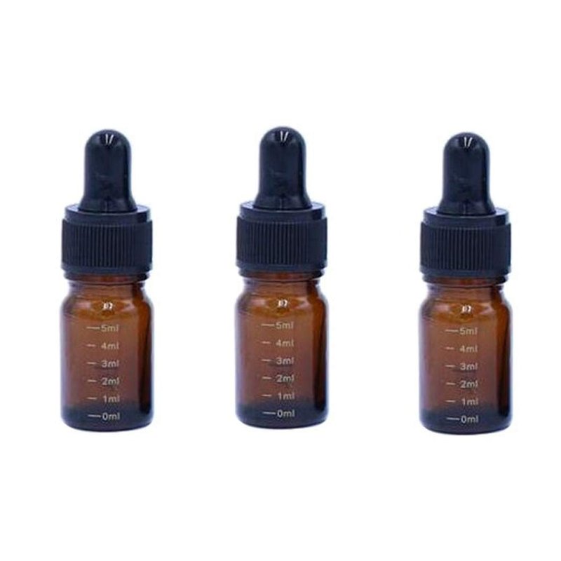 3 Pcs 5ml 0.17oz Empty Refillable Amber Glass Graduated Dropper Bottle Essential Oil Cosmetics Elite Fluid Container Jar Pot Holder with Glass Pipette Dropper