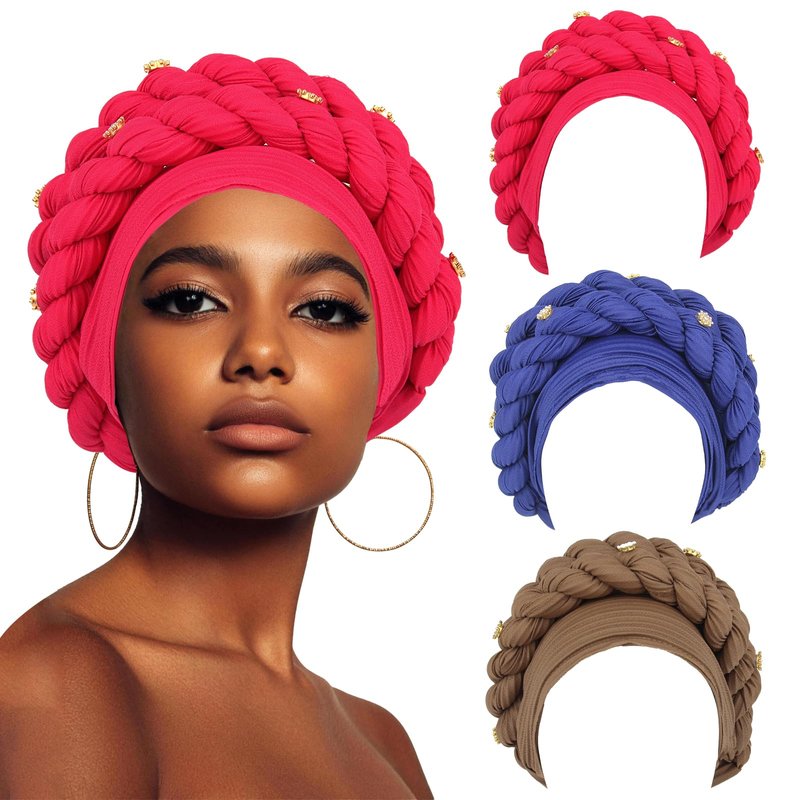3 PCS African Braid Head Wrap for Women, Twisted Braid Hat Turban Headscarf, Head Coverings Headwrap
