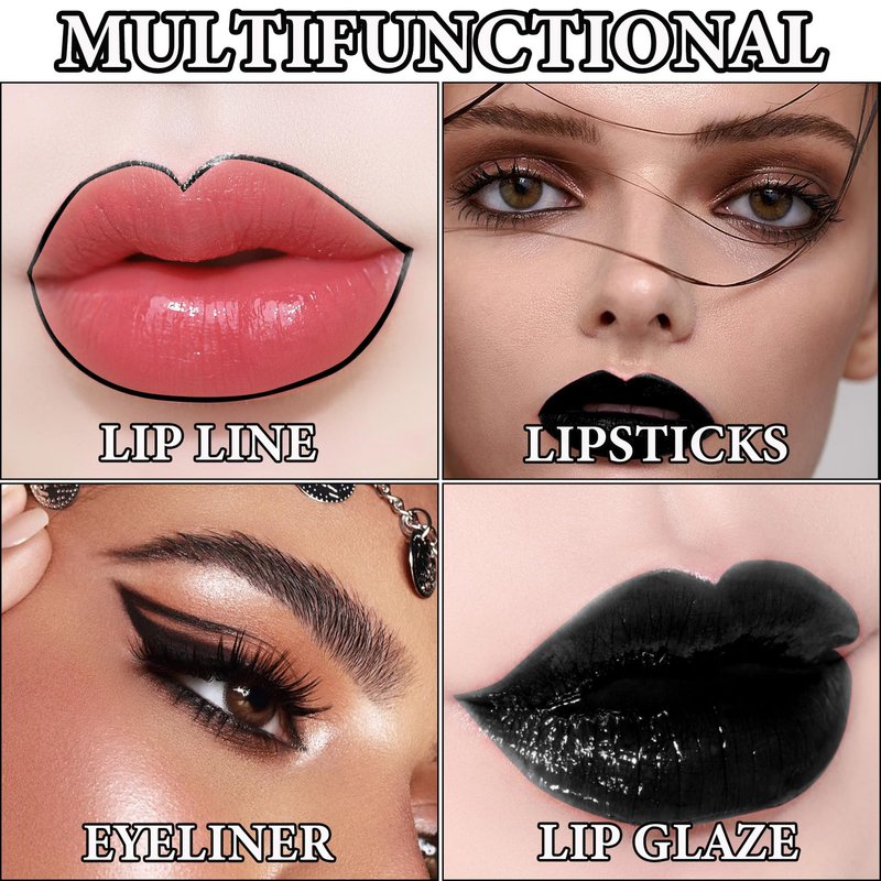 - 🍄【Easy to Use】High pigmented black matte lipstick is a lightweight and flattering lip liner with a 2mm wide fine tip, the pointed tip is easy to draw and fit the lip shape, it can accurately outline the edge line of your lips, creating the perfect lip look for you.