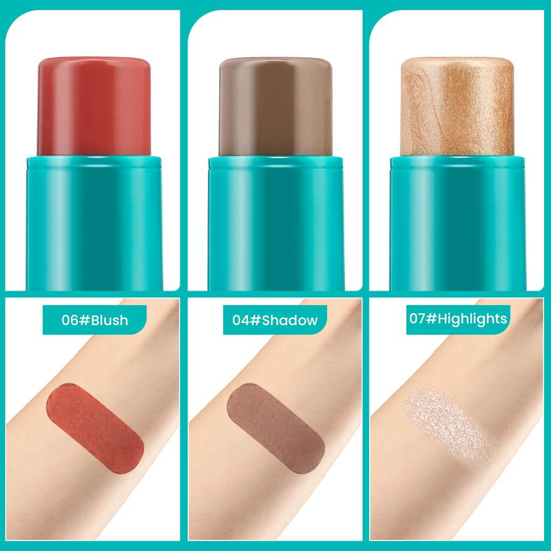 What you will get:1 Pcs Contour Stick,1 Pcs Blush Stick,1 Pcs Highlight Stick,1 Pcs Brush