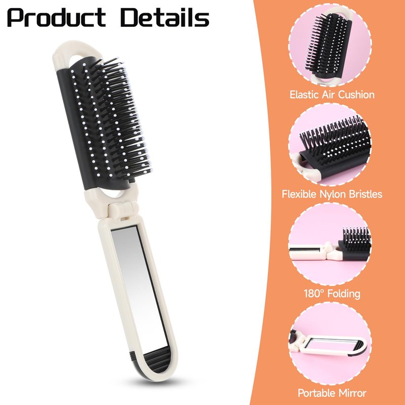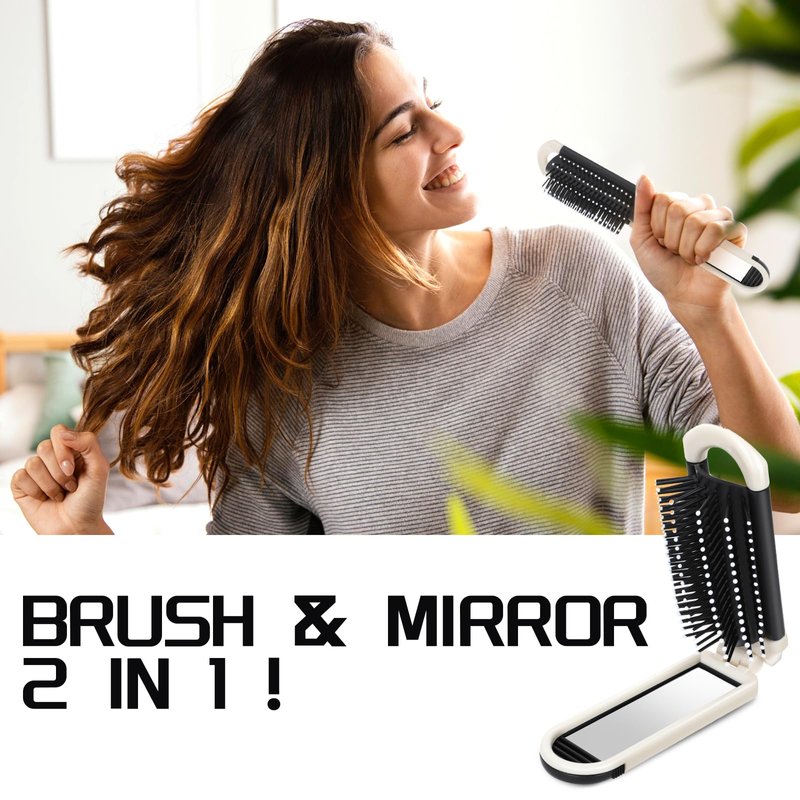- 【Removable Mirror Design】The foldable hair brush is equipped with a small, exquisite and smooth mirror. The design with a mirror can help you check your makeup at any time, allowing you to comb your hair and make-up smoothly and very conveniently. The mini mirror is detachable and very convenient to use