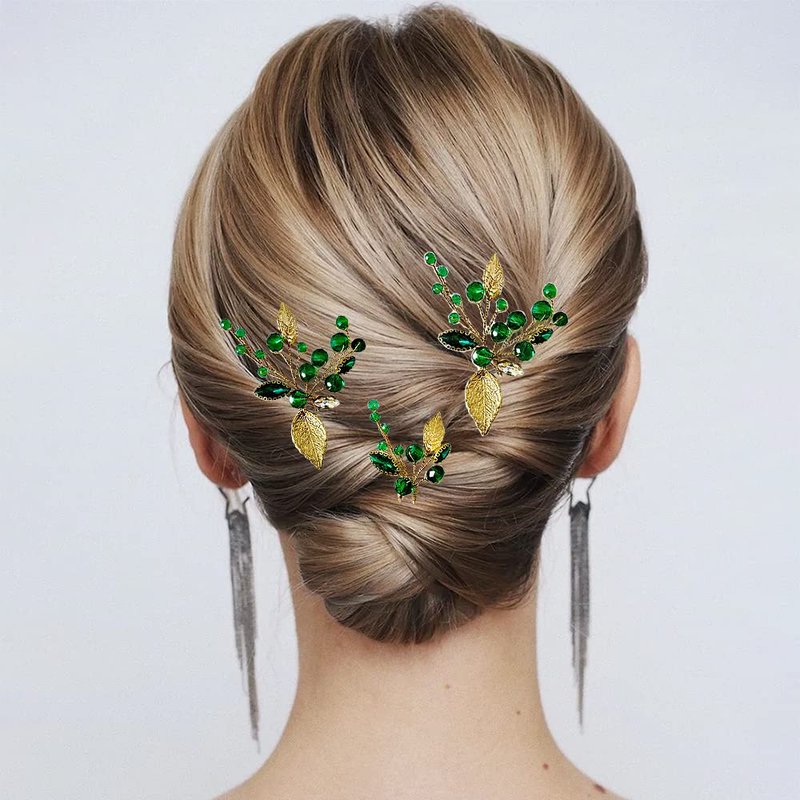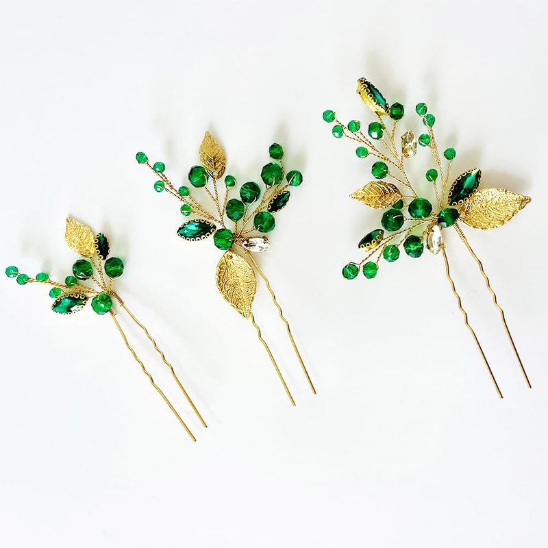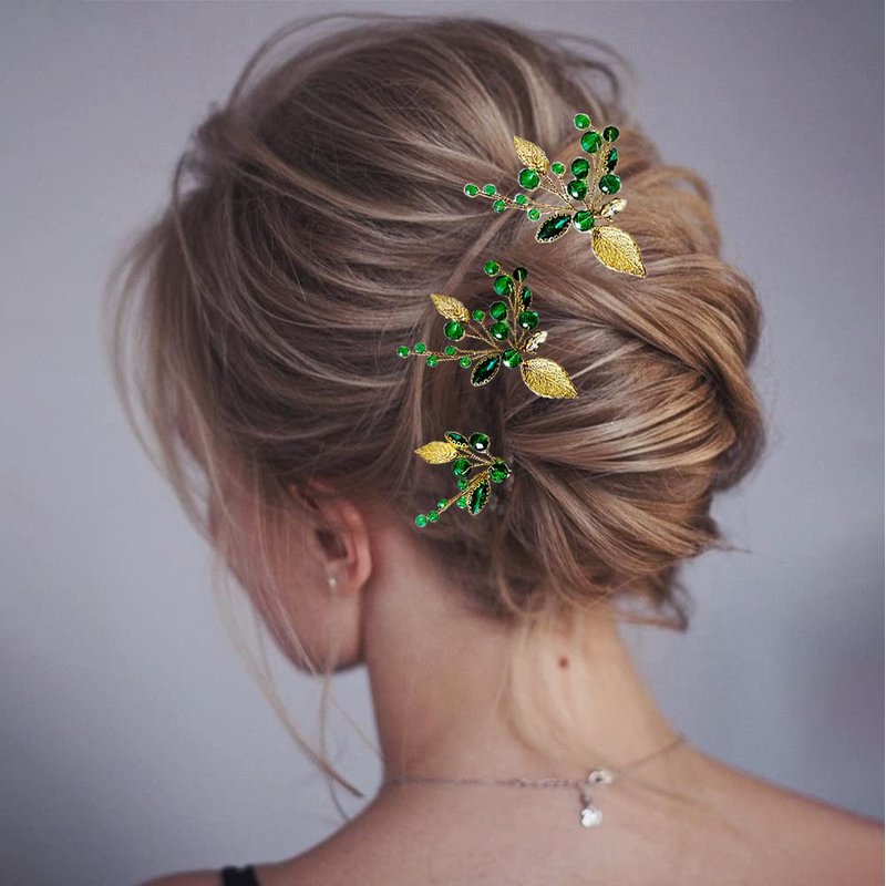 - Emerald Green Hair Pins: package comes with 3 x gold leaf hair clips; adding extra charm to your hair, idea for wedding, daily use, dates, shopping, parties and more