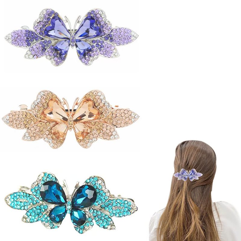 3 PCS Hair Clips for Women Ladies, Butterfly Design Crystal Rhinestones French Barrettes Spring Hair Barrettes Clip,Girl Hair Styling Accessories Side Clip Girl Bangs Clip, for Daily Wear