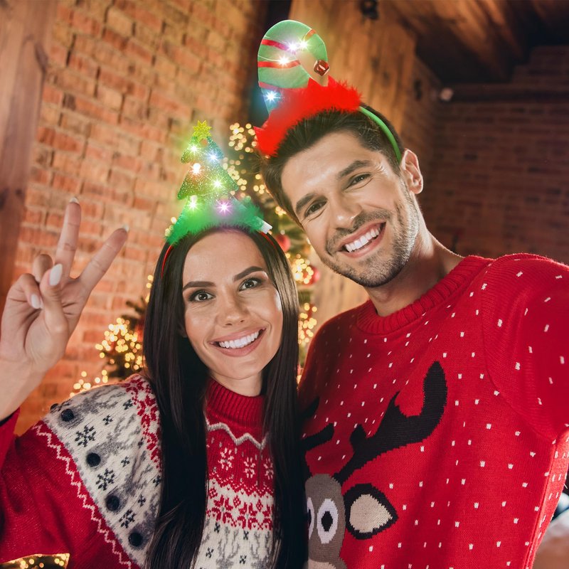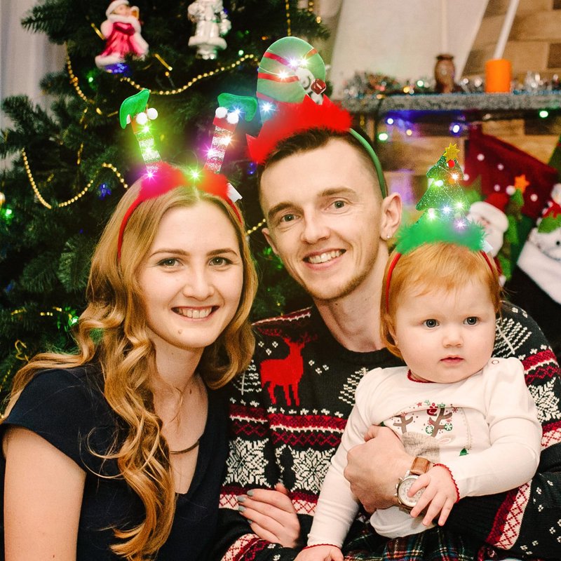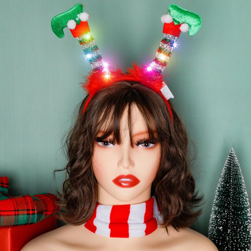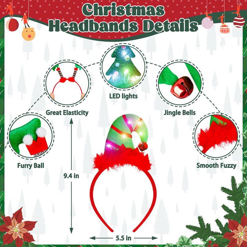 - LED Lights: Led lights are installed on the back of each Christmas headband to give off light in the dark, making you the center of the party and adding to the festive atmosphere!
