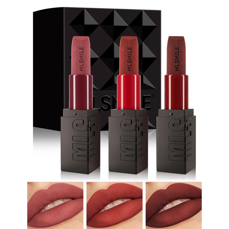 3 Pcs Matte Lipstick for Women Set, Rose Cherry Dark Red Brown Red Nude Matte Lipstick Long-Lasting Lip Makeup,Waterproof Smudge Proof Velvet Lip Gloss 24 Hours Lip Stick Lip Color Gift for Girl-Set B