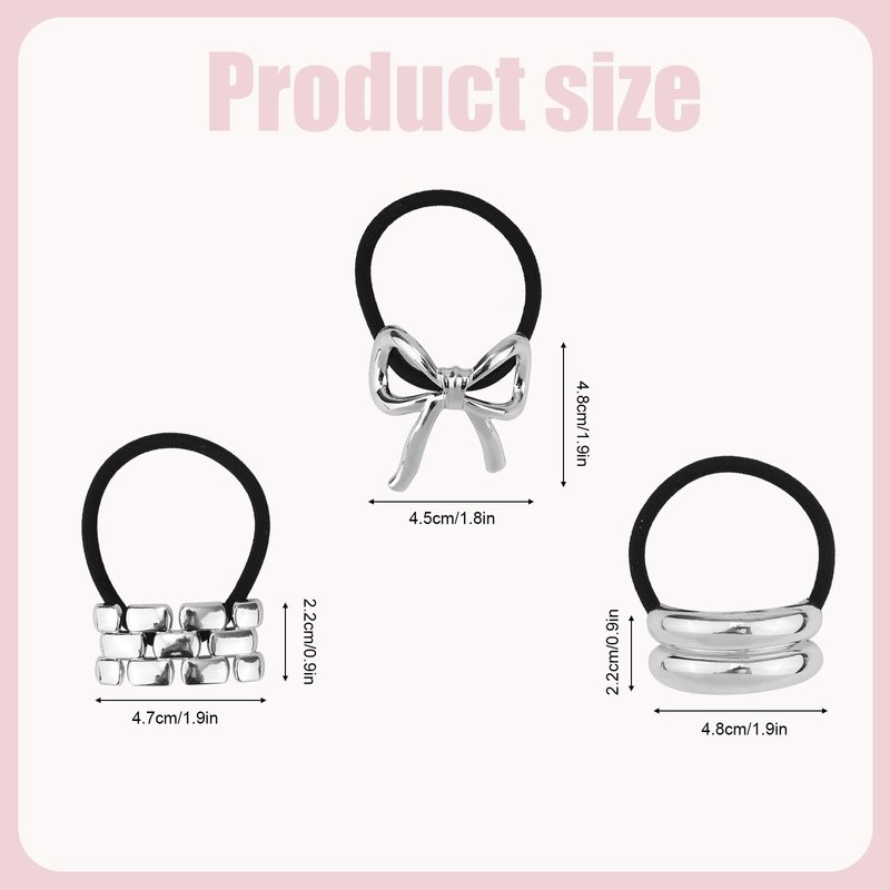 - Product Size: The size of the double-tube hair ring is about 4.8x2.2cm/1.9x0.9in, the bow hair ring is about 4.8x4.5cm/1.9x1.8in, and the chain hair ring is about 4.7x2.2cm/1.9x0.9in. The size is suitable for all ladies.