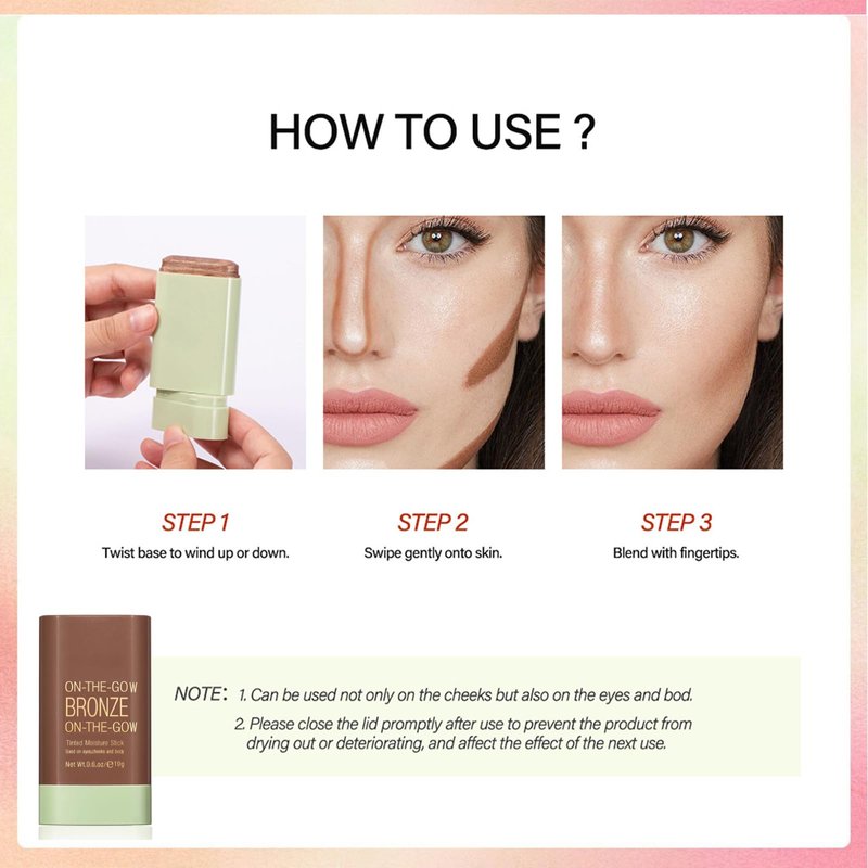 - How To Use: After applying your care foundation, use the highlighter stick, contouring stick and blush stick to gently apply to your forehead, cheeks, jawline and nose, then use a soft makeup brush to smooth out until it blends into your skin for a natural, perfect matte finish look.