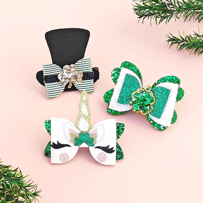 Quantity: 3 St. Patrick's Day Bow Hair Clips