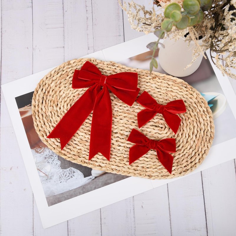 3 PCS Velvet Bows Hair Clip Ribbon Red Accessories Ponytail Holder Hair Bow for Women Girls Toddlers Teens Kids