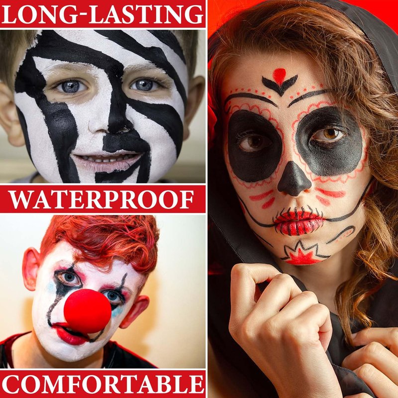 - ✅【Multi-purpose】Face paint can be used not only on your face, but also on your body. Suitable for Halloween, zombie makeup, clown makeup, costume props, parties and other special effects Halloween makeup.