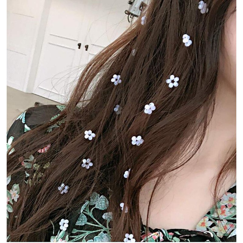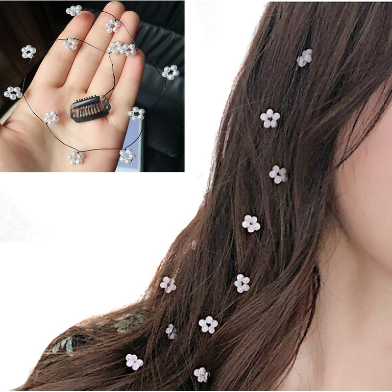 3 PCS Women Crystal Flower Long Hair Decorative Headdress Hair Extensions with Comb Invisible Streamline Hairpin Hair Accessories (White)