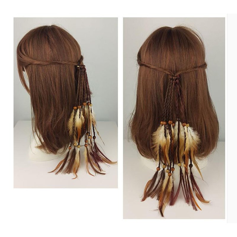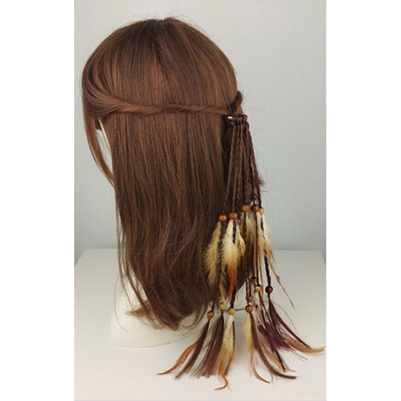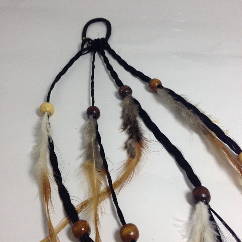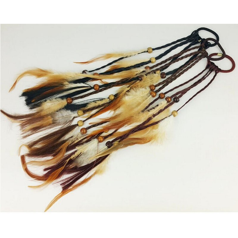 3 PCS Women Lady Girls Handmade Bohemia Hair Rope Head Wrap Hair Band Headbands Elastics Feather Hair Tie Ponytail Holders Hair Accessories Headdress