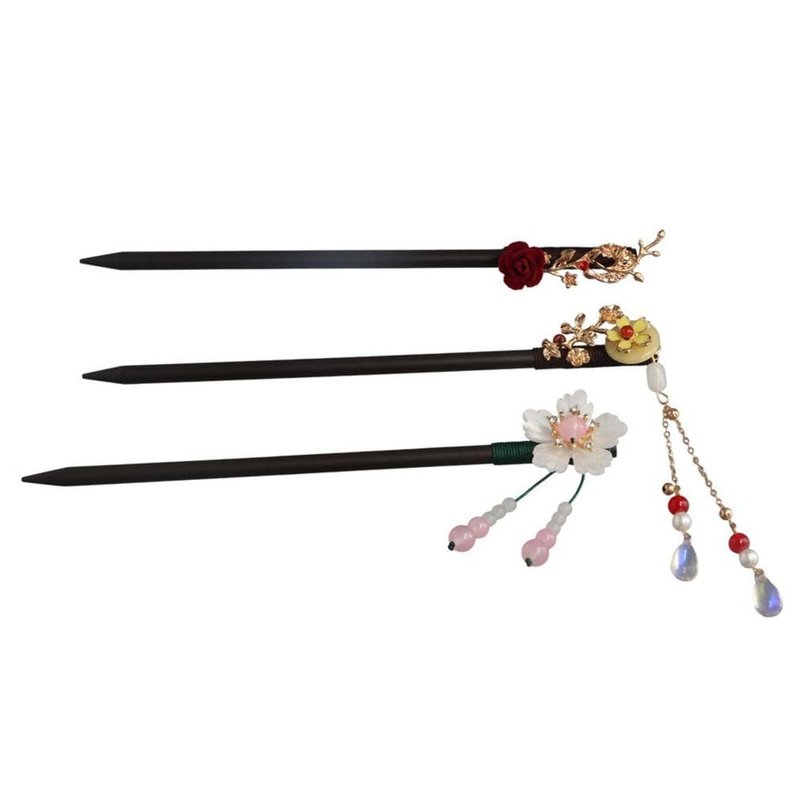 3 Pcs Wooden Vintage Flower Tassel Hair Sticks Handmade Chinese Style Hair Chopsticks Hairpins Elegant Hair Accessories for Women Girls