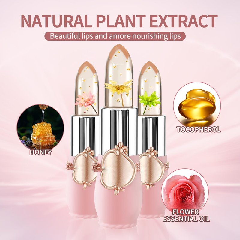 3 Pcs/Set Flower Jelly Lipstick Set Temperature Change Moisturizer Long Lasting Nutritious Balm Magic Color Change Lip Gloss (3Pcs Flower Jelly Lipstick A)