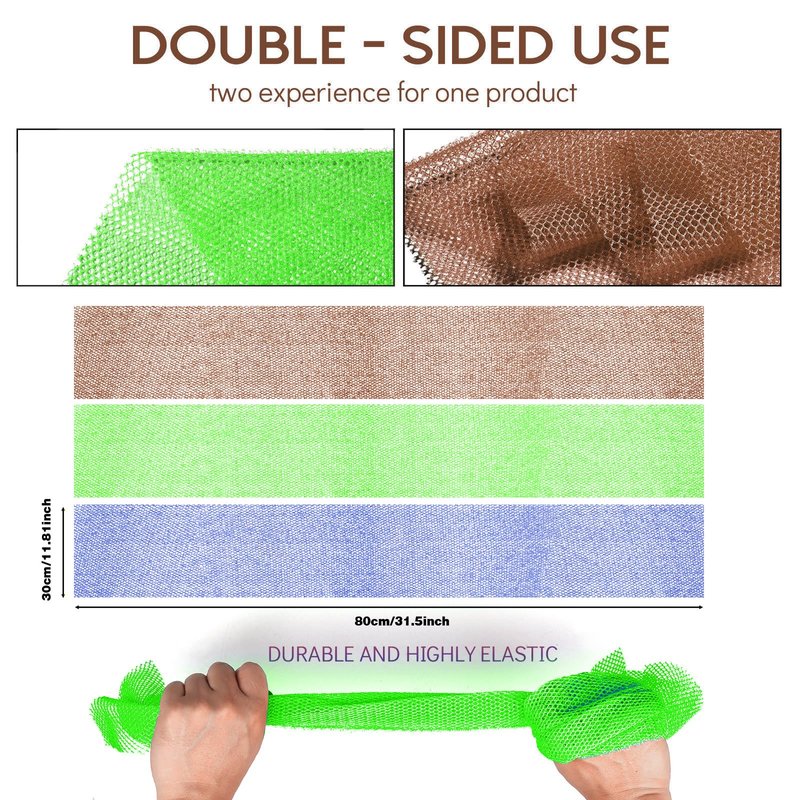 - 【More efficient cleaning】The exfoliating body net is rougher than a ordinary bathing cloth, but soft enough for daily body cleansing.easy for removing dead skin, dirt, oil, and eliminating impurities, unclogging pores, suitable for women and men of most ages to use