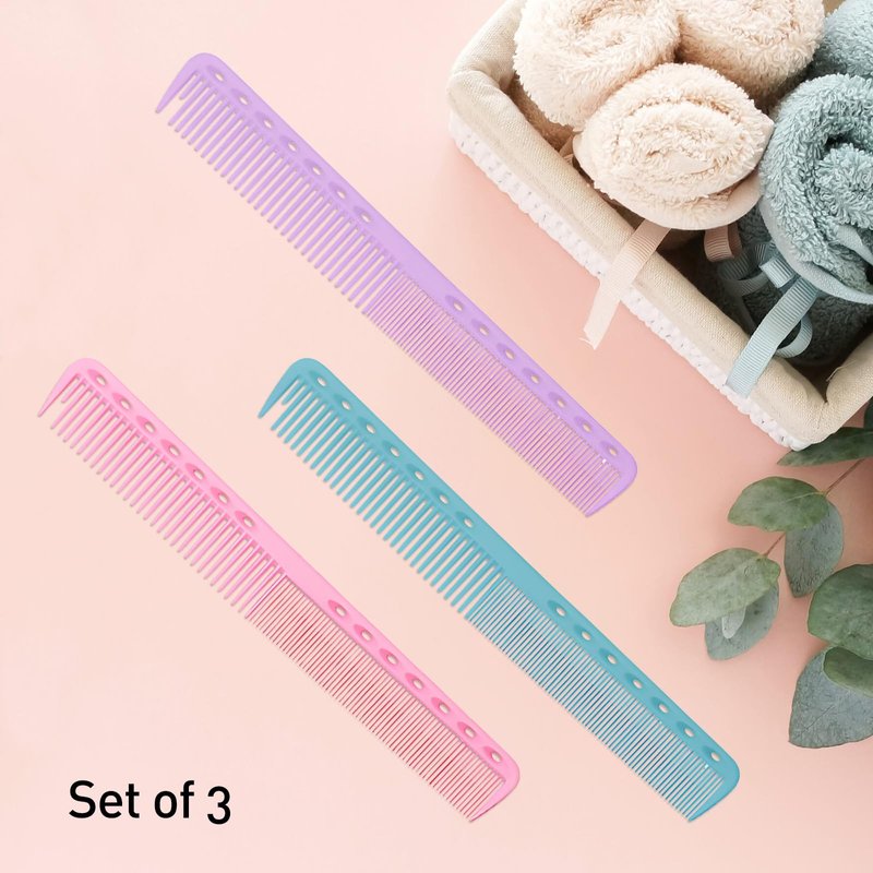 - Innovatively designed, each comb comes with 14 holes acting as a measure. It possesses both finely spaced and standard-spaced teeth for optimal hair grip, with a unique half-length first tooth to facilitate section picking and parting creation.
