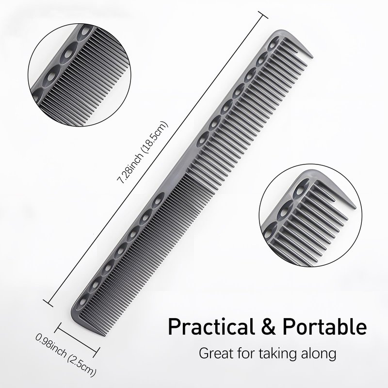 - Our black carbon fine cutting comb stands out with its heat resistance and anti-static properties. It's characterized by finely and standard-spaced teeth and a unique carbon-sanded texture.