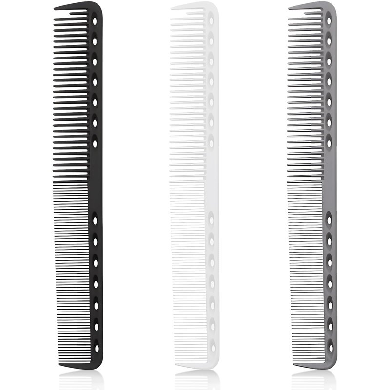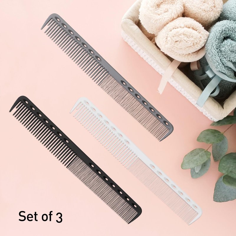 - Innovatively designed, each comb comes with 14 holes acting as a measure. It possesses both finely spaced and standard-spaced teeth for optimal hair grip, with a unique half-length first tooth to facilitate section picking and parting creation.