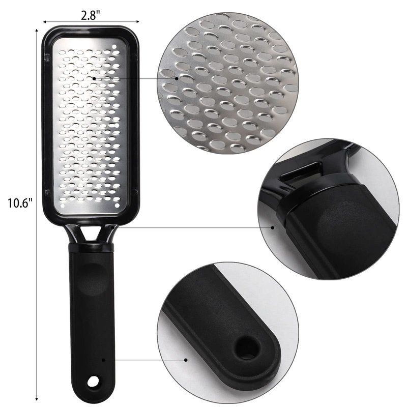 - Go start with the largest heavy duty foot grater after soaking feet then filing with the rough side then finish up with the medium side by using the double sided foot file callus remover