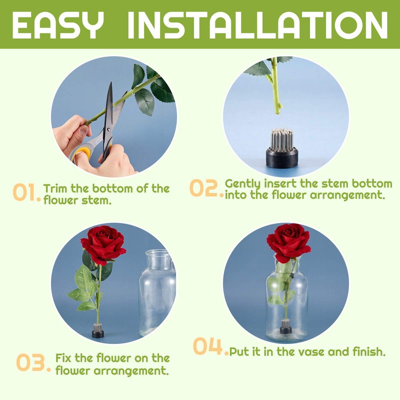 - Stable base: the base of the flower frog is made of rubber, the entire rubber base has a certain weight, its own weight helps to keep the holder with flowers from moving if immersed in the water, or inserted with a large number of flowers or branches, rubber material also prevent the branches scratching or damaging your vase