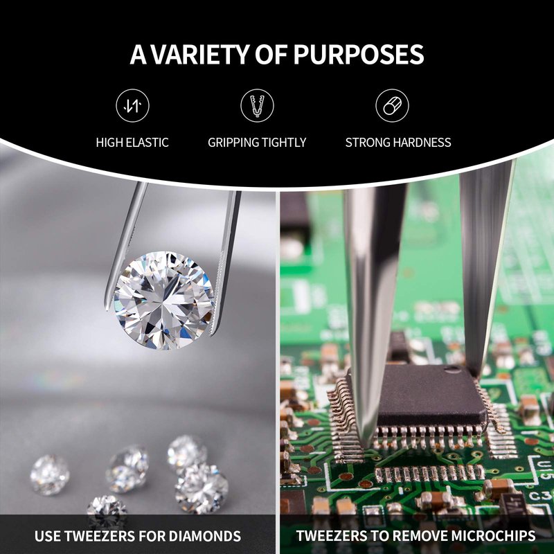 - Multi Purpose: eyelash tweezers can not only be applied to clip false eyelashes, but also to handle decorations, precision small parts, digital repairs, circuit board repairs, integrated circuit pins, etc., suitable for beauty salons, nail salons, gem shops, laboratories, etc.