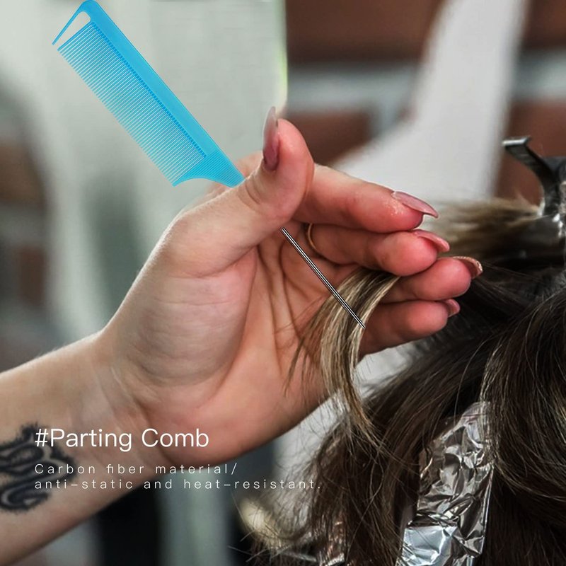 - Carbon Fiber Parting Comb: Carbon fiber material, anti-static and heat-resistant. The stainless steel comb tail is not easy to deform or rust. You can create a variety of hairstyles, such as styling, separation, combing, post-styling and hair dyeing.