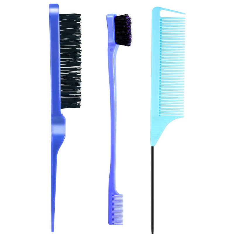 3 Pieces Teasing Brush Set Bristle Hair Brush 3 Row Teasing Brush Dual Edge Brush Sturdy Styling Comb Parting Comb for Brushing, Combing, Slicking Hair for Stylist Women (Blue)