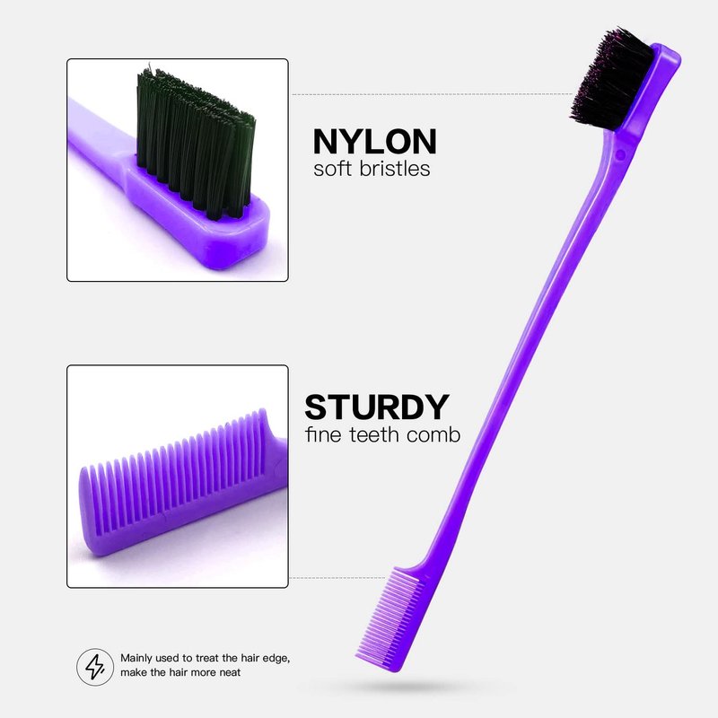 - Hair Edge Brush: Made of ABS and nylon soft bristles, double-headed design, more bristles, firm rebound. It is ideal for combing bangs, eyebrows, eyelashes, and hairline to keep the edges smooth.