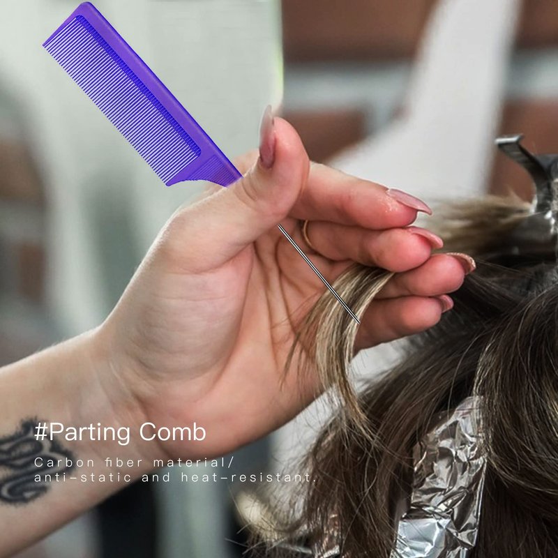 - Carbon Fiber Parting Comb: Carbon fiber material, anti-static and heat-resistant. The stainless steel comb tail is not easy to deform or rust. You can create a variety of hairstyles, such as styling, separation, combing, post-styling and hair dyeing.