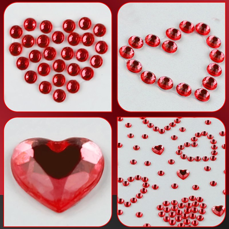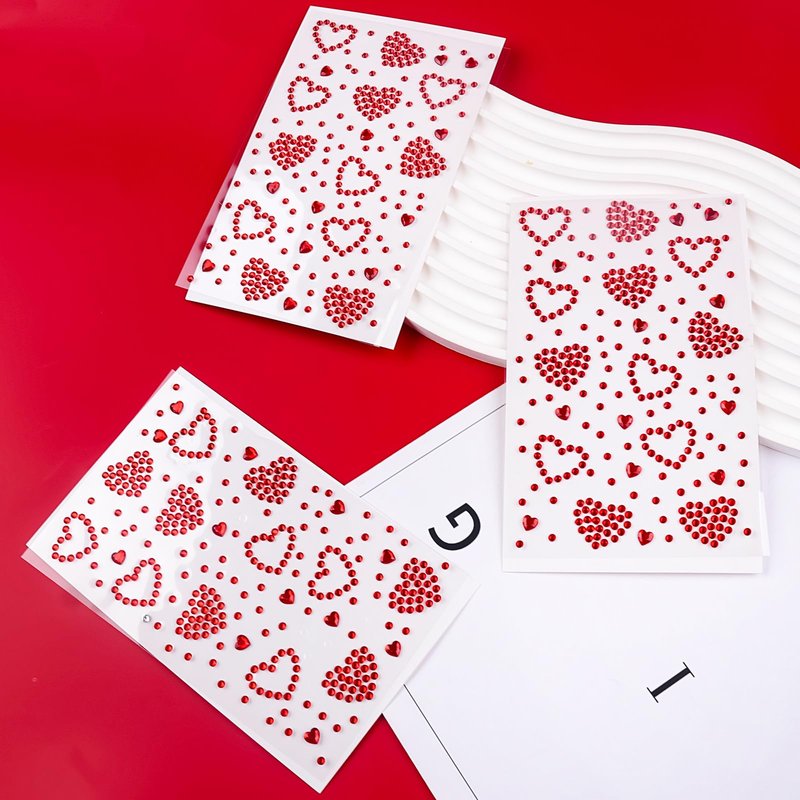 3 Sheets Rhinestone Sticker Self Adhesive Rhinestones Gems for Face Eyes Makeup Hair Body Stick on Rhinestones Stickers for Valentine Festival Decal Decor(Red)