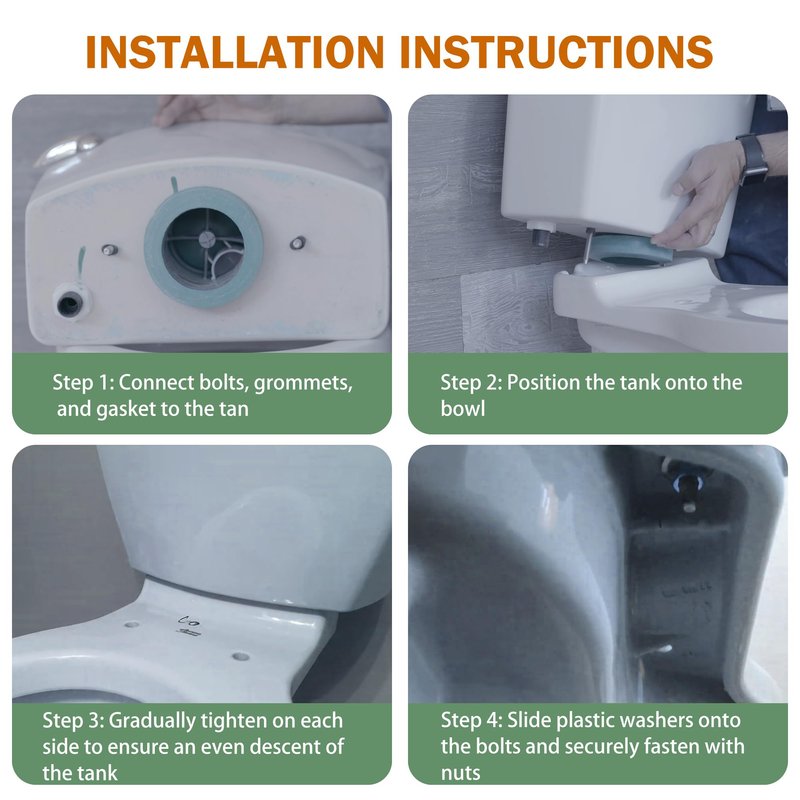 - [WHAT YOU GET] - You will get 1 piece of 3'' green washer, white washer and black ring, 2 pieces of long toilet tank bolts, hexagonal nuts and Black locking rings. The tank to bowl bolts and gaskets coupling kit will keep your toilet tank solidly attached and prevent leaks between the tank and the bowl.