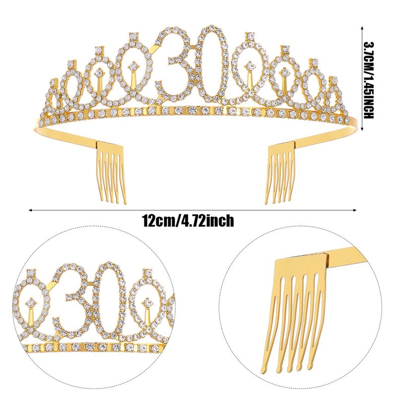 • 【30th Birthday Crown】Gold 30th birthday tiara is made of alloy metal,crystals and rhinestones, which is quality material and fine workmanship; As you know the corwn always give people a feeling of queen;yeah you are the queen on your birthday party;just enjoy it!!