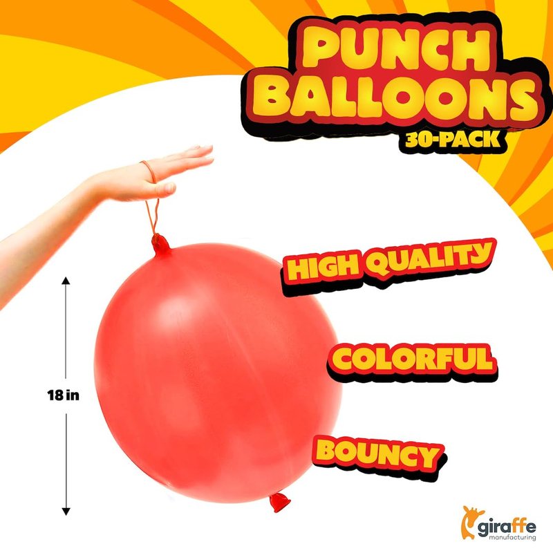 - Party Favors For Kids 4-8: Our colorful punch balloons party favors for kids are made of high quality thick latex material that is strong & reliable, not easily broken or faded. The heavy duty balloons can be inflated air or helium for a long time without leakage.