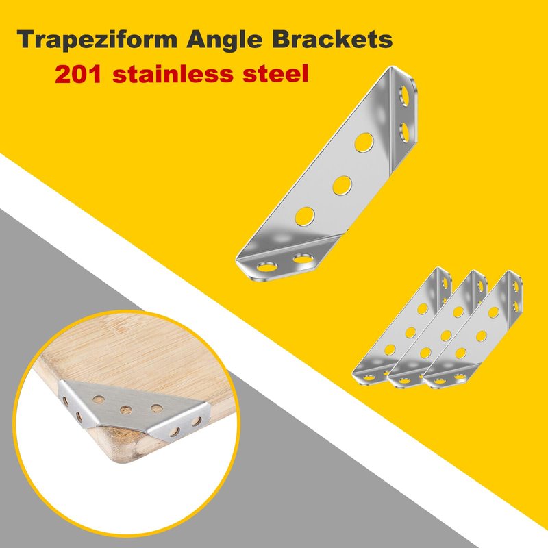 - Trapeziform Angle Brackets Material: Trapeziform angle brackets are made of high-quality 201 stainless steel, has gone through strict safeguard process, not easy to rust, waterproof and durable.