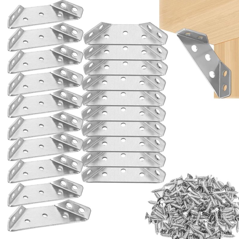 30Pcs Trapeziform Angle Code Shelf Support Fastener, Universal Furniture Corner Connector, Stainless Steel Angle Code Corner Bracket, Stainless Steel Corner Braces Feature High Quality - Trapeziform Corner Brace is made of premium stainless steel to ensure sturdiness & durability. Function - Perfect for connecting furniture joint corner board. Designed for a variety of support structures. Brushed Surface - Brushed finish,build to resist daily use, scratches and tarnishing. Structural Supports Design - The braces are designed as structural supports to strengthen the right angle corner joints against compressive failure. Note - Due to the different display and lighting effects, the actual color of the item may be slightly different from the color displayed on the picture.